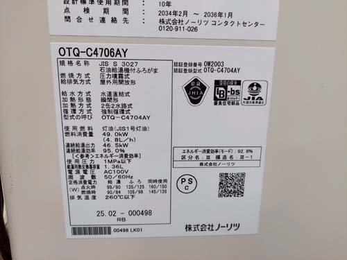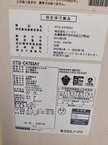 北条町 ノーリツ石油給湯機付ふろがまOTQ-C4706AY 給湯器交換工事